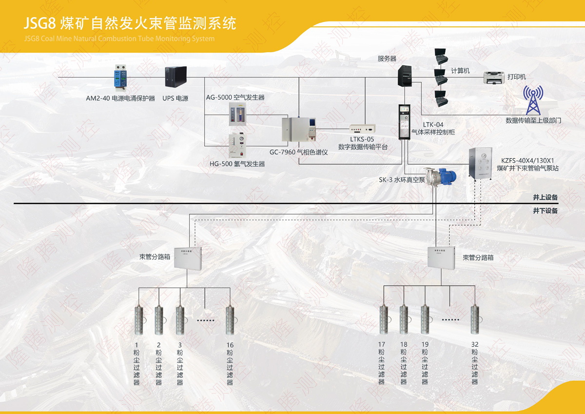 淄博隆騰測控設備有限公司是生產煤礦火災束管監測系統,水環式束管抽氣泵,無油無水束管抽氣泵的廠家,KJ2001井筒(皮帶)防滅火系統、JSG11煤礦自然發火(激光)束管監測系統、JSG8煤礦自然發火束管監測系統、防治方面相關技術開發的技術企業。公司自創辦以來,致力于煤礦自然火災監測、防治研究,KJ2002密閉區域多參數監測系統、KZFS40×4/130×1礦井束管輸氣泵站、具備485控制和傳輸的DFH20/7礦用本安型電動球閥、專利產品KDP12束管專用本安型自動放水器、CFZ10負壓本安型氣體采樣器等等高、新、特產品。